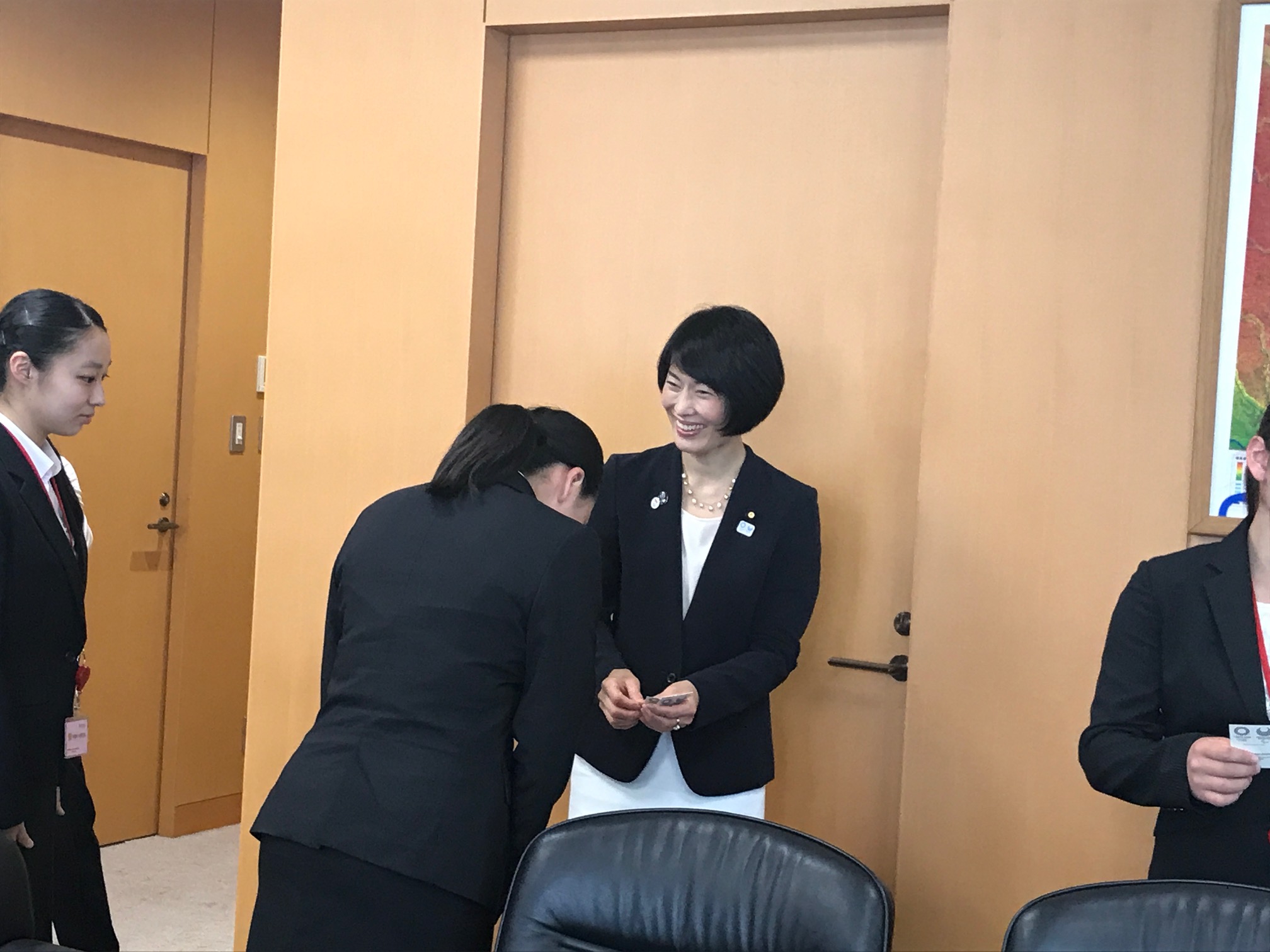 丸川珠代大臣はひとりひとりの選手と握手をしてくださり、温かい激励の言葉を頂きました。8月クロアチアに向かう選手達にとって大変励みとなりました。